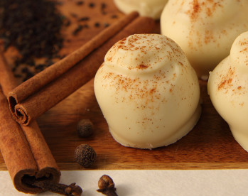 Extra-rich local cream is infused with locally blended chai and a bevy of spices: cardamom, cinnamon, cloves, ginger, and star anise. The addition of black pepper makes this the perfect winter truffle. Fragrant, spicy notes and white chocolate are reminiscent of a chai latte. Seasonal.