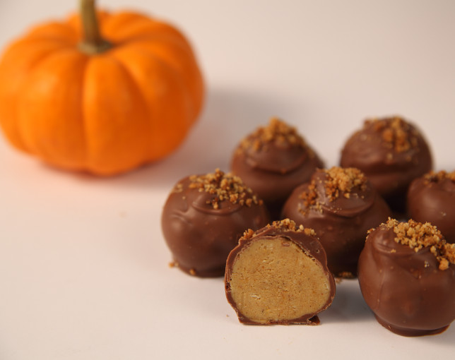 A white chocolate ganache made with roasted pumpkin and our fall 5-spice blend, with a generous helping of dark rum. Dipped in milk chocolate and garnished with a toasted pepita. 'nuff said. Seasonal.